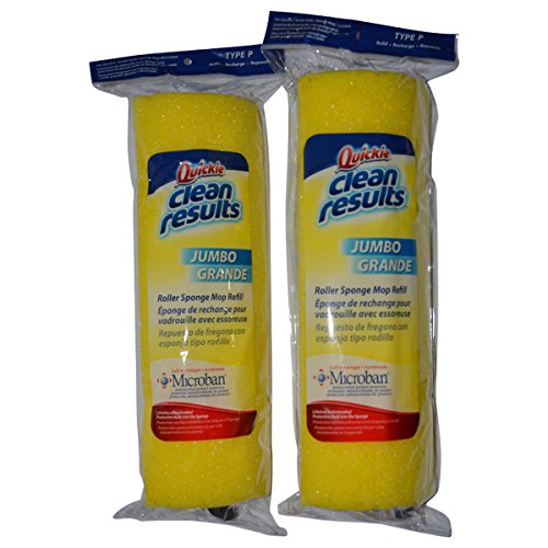 Quickie Clean Results Roller Jumbo Sponge Mop Refill 12 Inch - Works on Type P Mops - 2 Sponges
