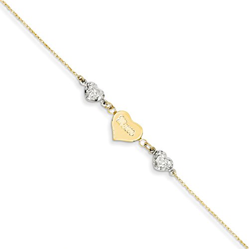 Roy Rose Jewelry 14K Two-tone Gold Diamond-cut Puffed Hearts MOM w/ 1'' extension Anklet ~ Length 9'' inches