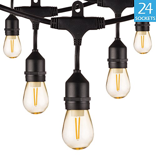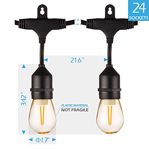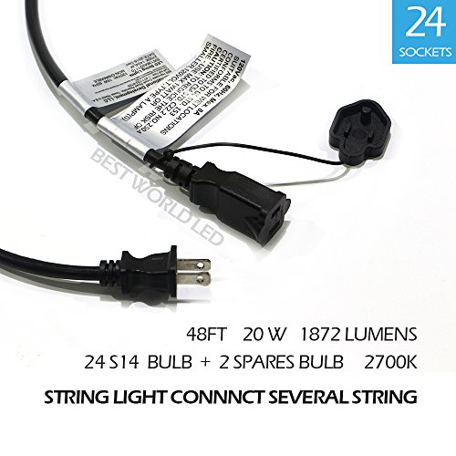 BWL Outdoor String Lights, Linkable 48ft Patio Lights with 24 S14 Plastic Hanging Bulbs + 2 Spares Bulb, Weatherproof Vintage Edison String Lights Great for Outdoors, Café, Yard, Wedding (Warm White)