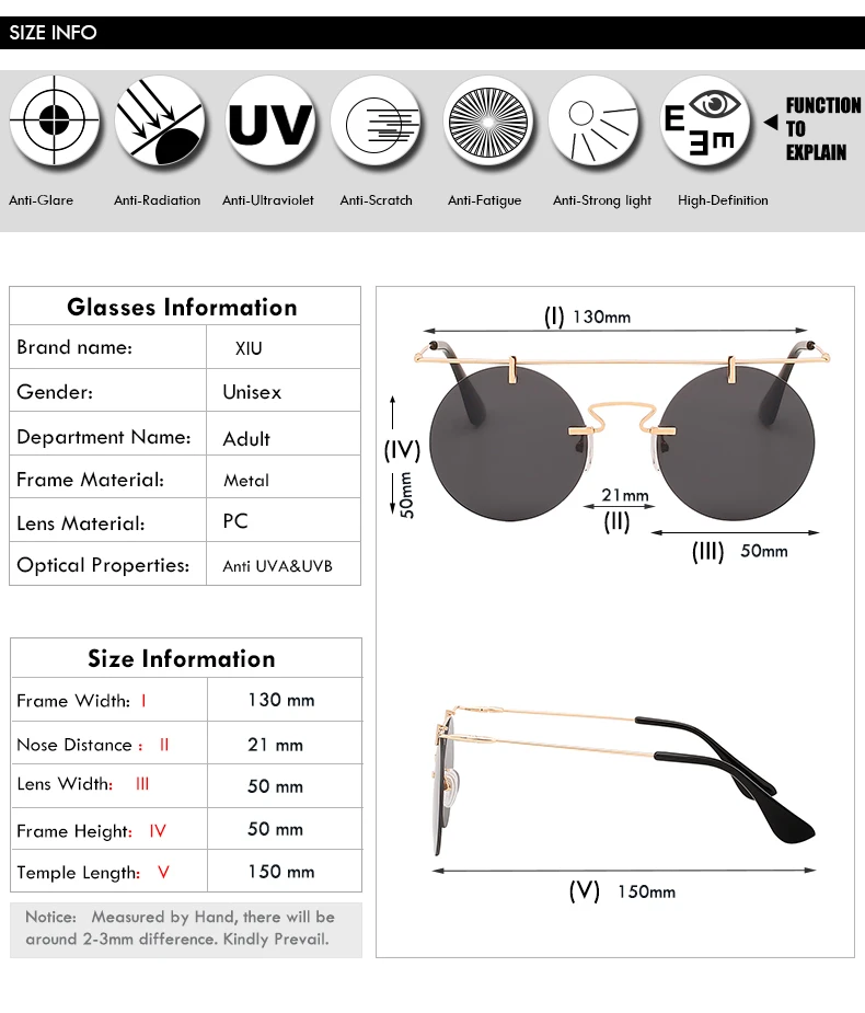 Lens Function: 100% UV400 Protection Against Harmful UVA/UVB Rays
