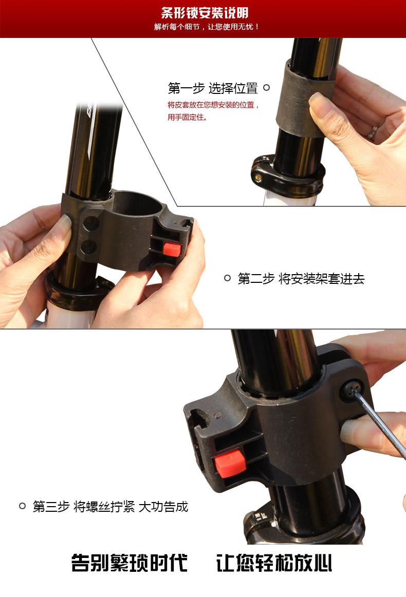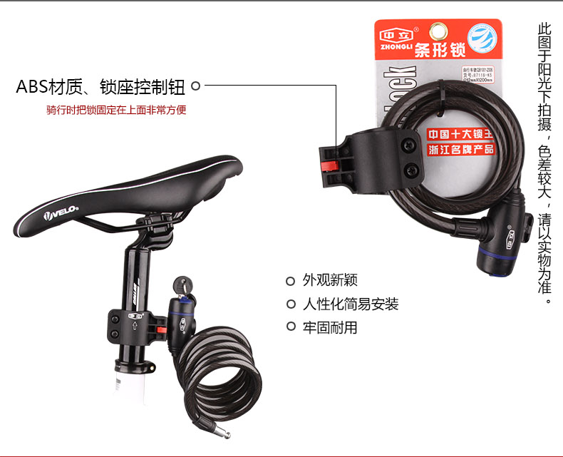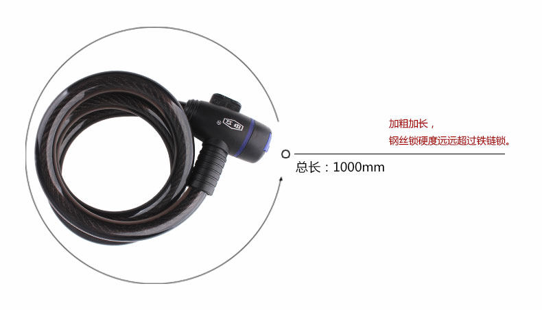 中立 山地自行车锁 防盗锁圈锁电动车锁具死飞钢缆锁带锁架 加粗