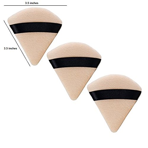 3-Pack Powder Puffs For Face Makeup, Made of Cotton Velour in Triangle Wedge Shape Designed for Contouring, Under Eyes and Corners