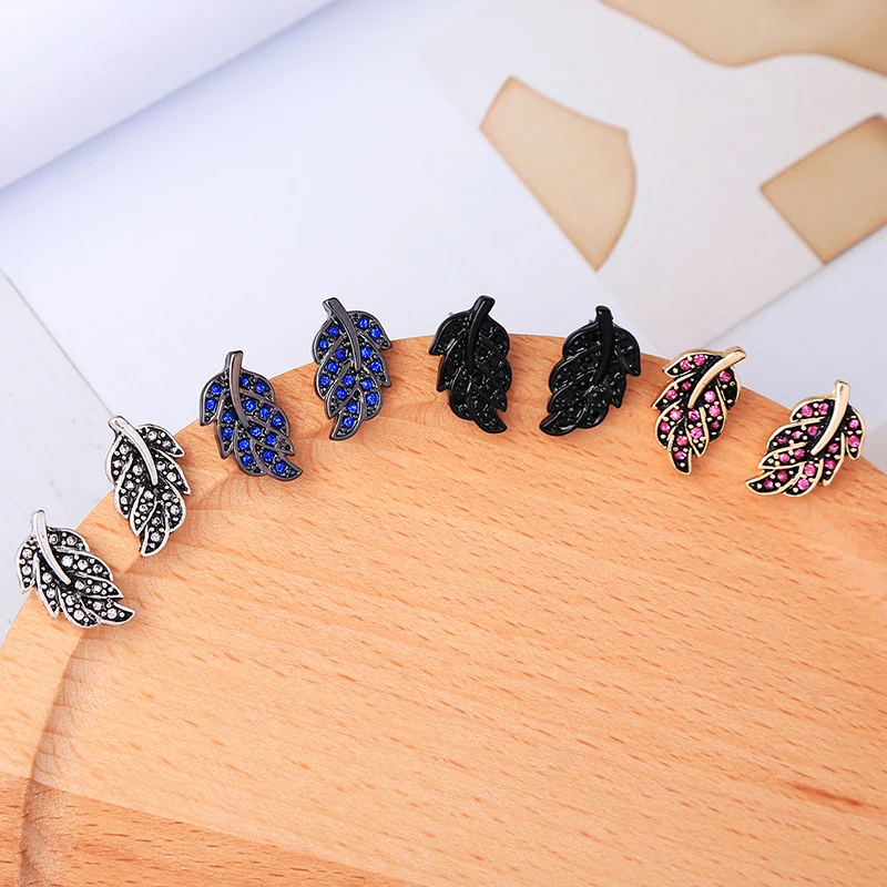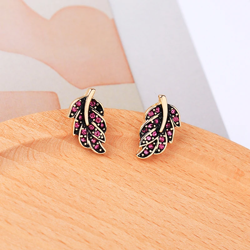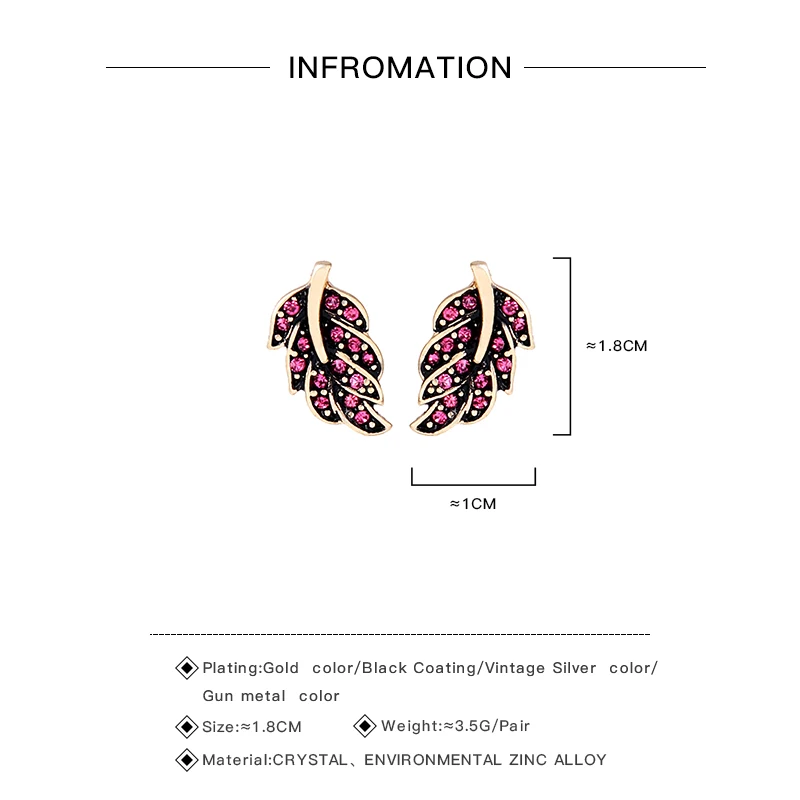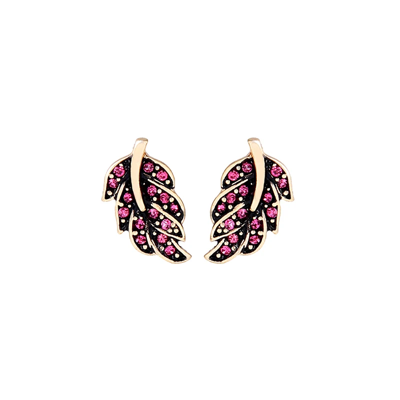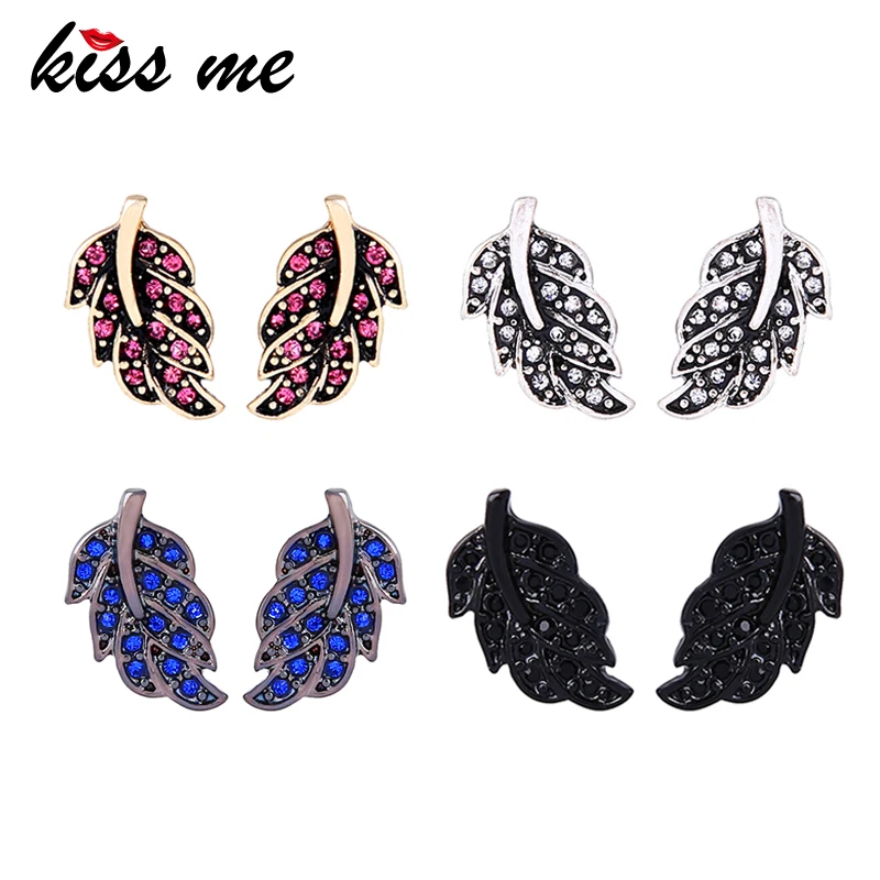 Production name ::KISS ME 4 Colors Crystal Leaf Small Stud Earrings