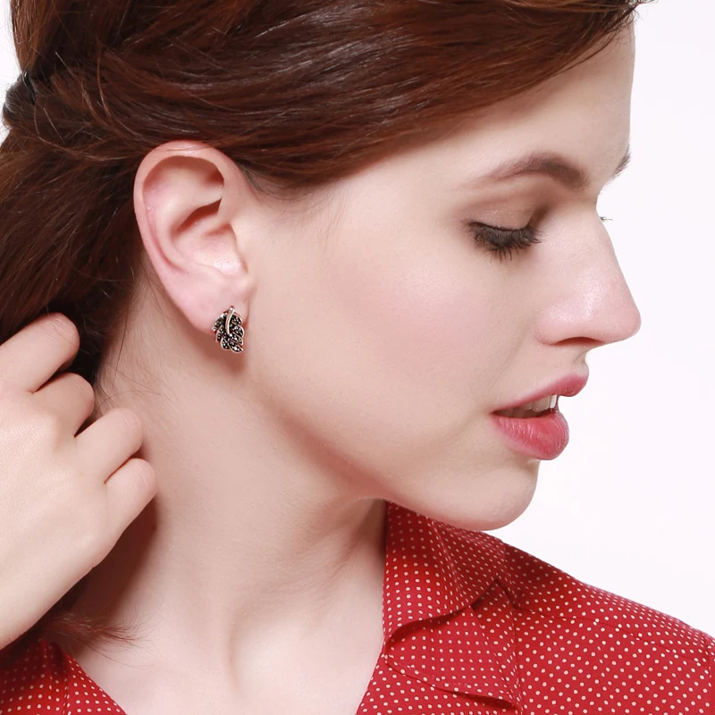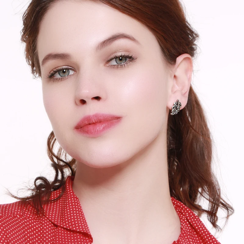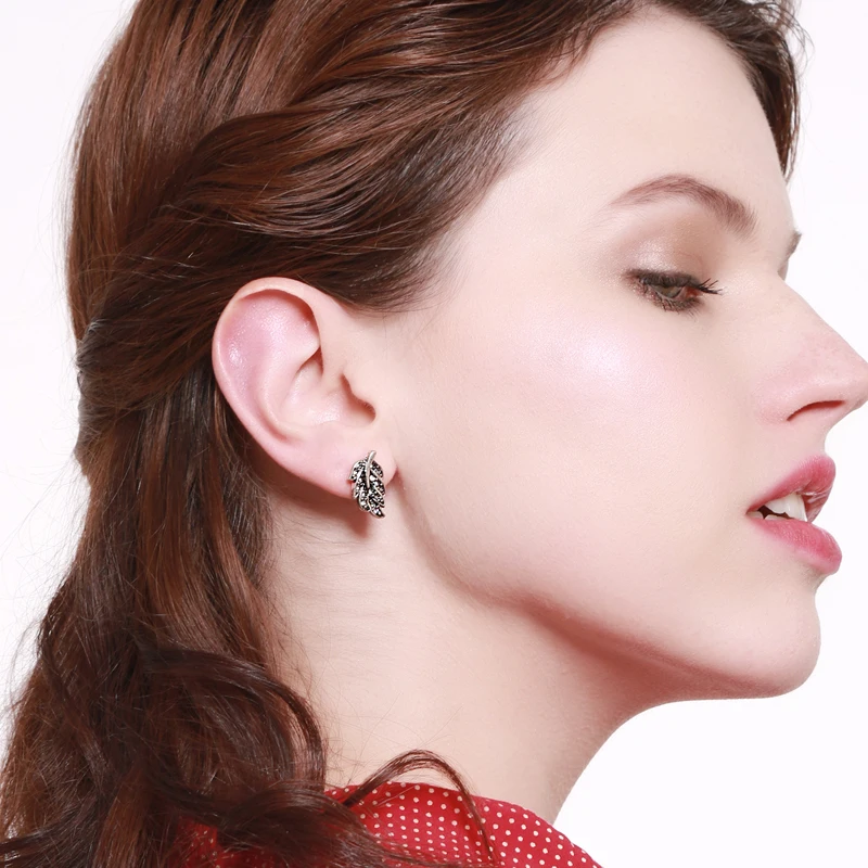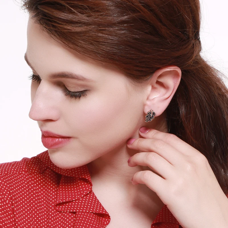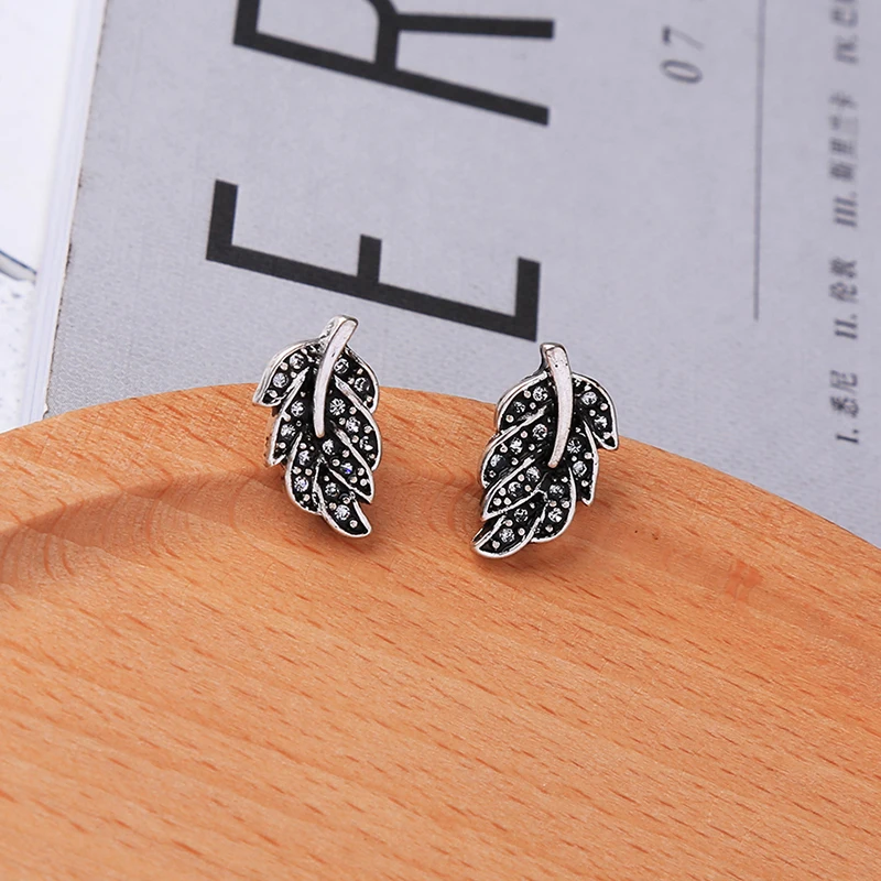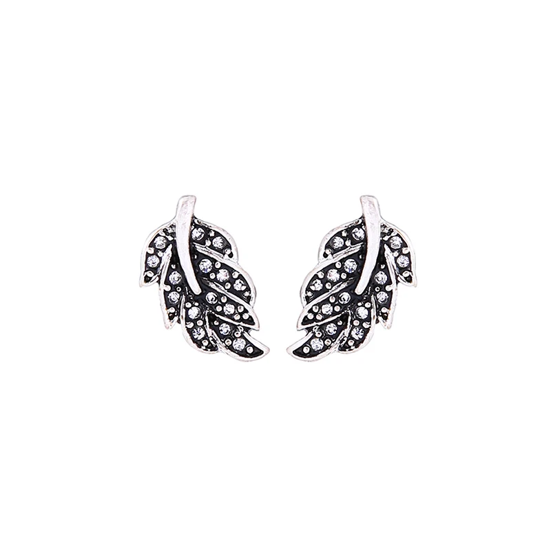 Production name ::KISS ME 4 Colors Crystal Leaf Small Stud Earrings