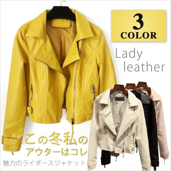 【サイズ】S M L XL 【素 材】PU【カラー】 ブラック イエロー、ピンク、ベージュ女性らしいすっきりとしたサイジングが魅力のライダースジャケット。かっこよくにも可愛くにもなれる、お役立ちアイテムです柔らかく馴染みやすい生地なので着心地も抜群。ヴィンテージ感も同時に楽しむことが出来ます