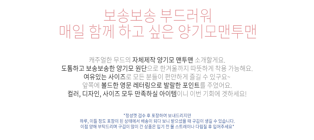 .같은 사이즈라도 체형에 따라 핏감이 조금씩 다를 수 있습니다.