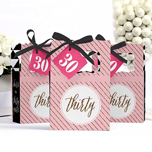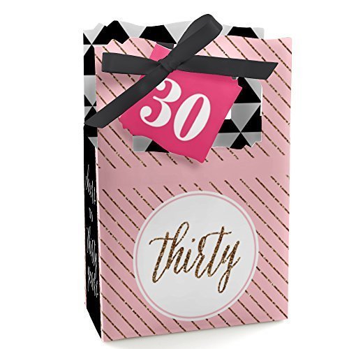 Chic 30th Birthday - Pink, Black and Gold - Birthday Party Favor Boxes - Set of 12