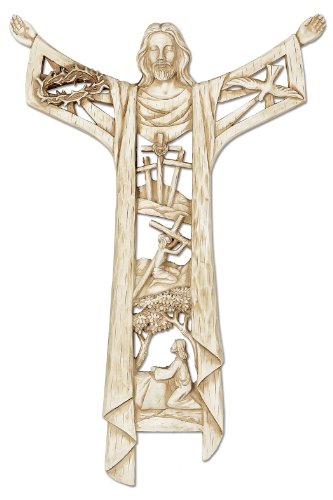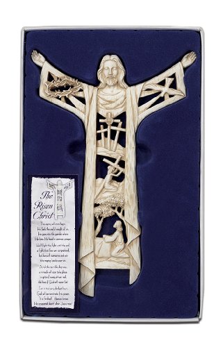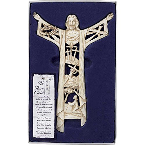 The Risen Christ Calvary Story 11 Inch Woodgrain Resin Stone Wall Cross