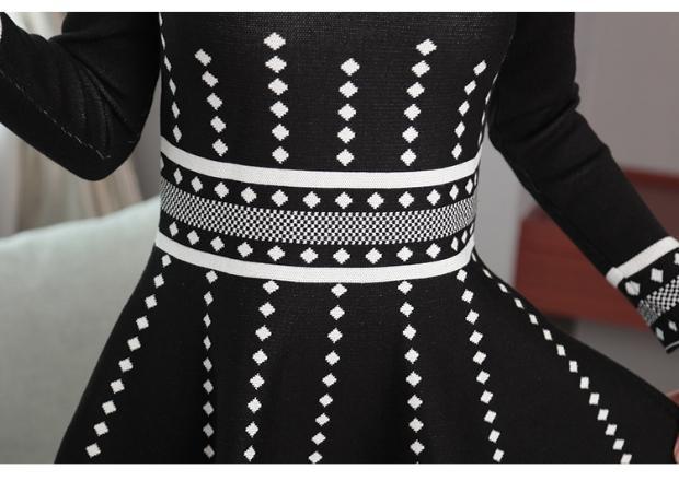 ワンピース 長袖 ミニ丈 キュート デート ダイヤ柄 Aライン フレアスカート お呼ばれ
