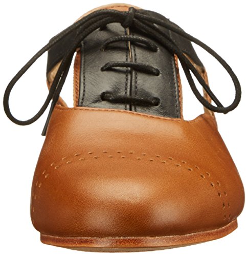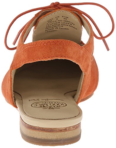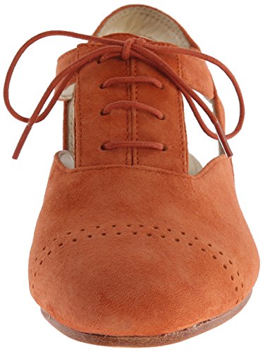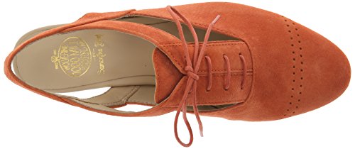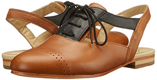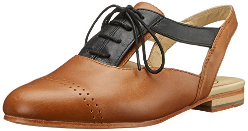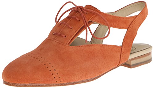 Oxford-inspired shoe featuring fixed slingback strap and decorative lacing at vamp