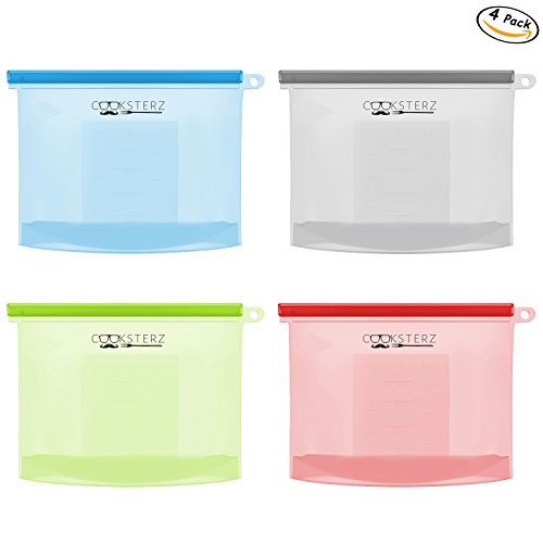 Reusable Silicone Food Preservation Bags, Food Savers, FDA & SGS Food Grade Silicone For Hot Cooking, Freezing, Snack Packing & Sous Vide Cooking. Airtight & Leak-Proof. 4 PCS, 4 Colors (Small Size)