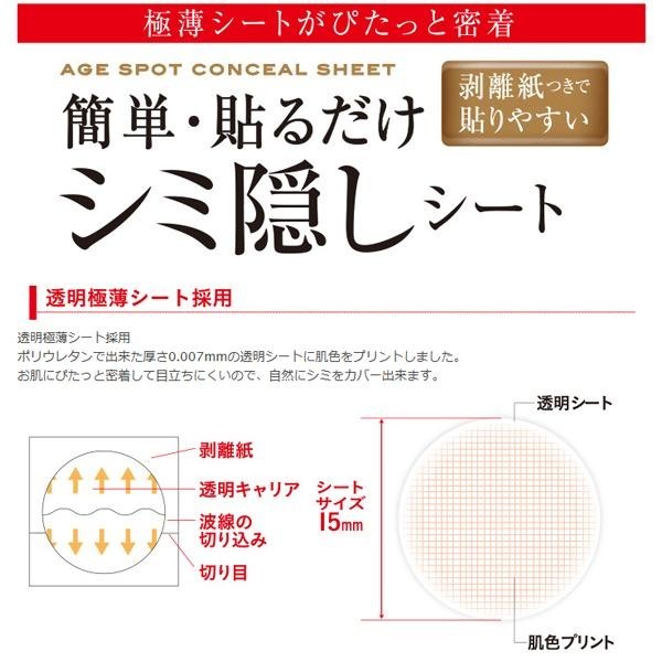 透明極薄シート採用。ポリウレタンで出来た厚さ0.007mmの透明シートに肌色をプリントしました。お肌にぴたっと密着して目立ちにくいので、自然にシミをカバー出来ます。 |