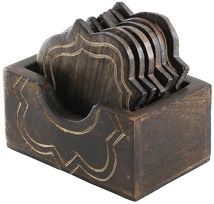 - What's in the package: 6 handmade retro coasters and 1 square coaster holder made in mango wood, well known for its durability