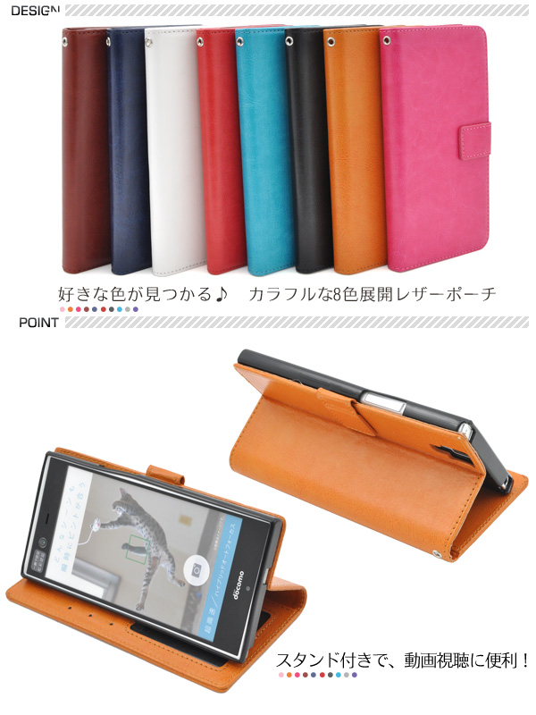 | arrows NX F-02H用カラフルな8色展開のカラーレザースタンドケースポーチ | | | |