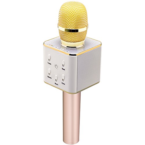 -. Title : BONAOK Wireless Bluetooth Karaoke Microphone Speaker,3-in-1 portable Handheld Mic karaoke Machine for Android iPhone Apple PC or Smartphone(Golden)