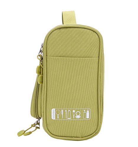 Product Description This small travel kit bag is great for those of you that travel on a tight compact schedule. Everything you need will fit into this bag, it has many compartments for all the necessities such as toothbrushes, soap, toothpaste and more. Make traveling a little less chaotic with this Travel Companion. Multiple pockets let you store all your toiletry needs in one bag. With small, medium, large, and long pockets, everything is easy to find! Hang it in a garment bag (or on the towel bar) or fold it to stow easily in your suitcase. With a secure closure and easy-to-clean lining and pockets, you are always ready to go and to look your best. So keep it together and get going!Measures 9.4" x 4.3" *8.3¡°. Material:Polyester fiber 0