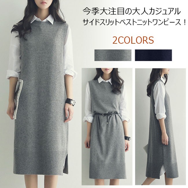 今季大注目の大人カジュアルサイドスリットベストニットワンピース! | |