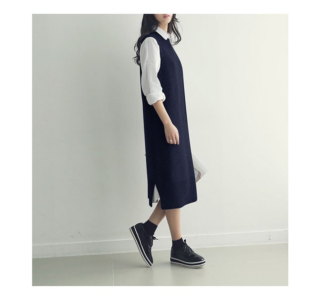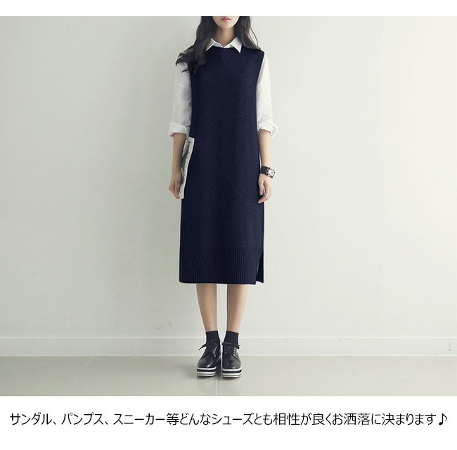 | 商品名 | ニットワンピース ニットベスト ベストワンピース チョッキ ロングニット レディース 七分丈 ノースリーブ 無地 ゆったり 暖かい スリット入り ラウンドネック 2017秋新作 |