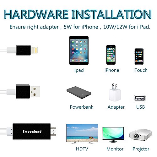 Emoonland iphone to HDMI Adapter Cable Great solution for video callings and sharing entertainment/files with your family, friends and workmates from your Apple devices to big screen. Enjoy your memories, movies and sports events!