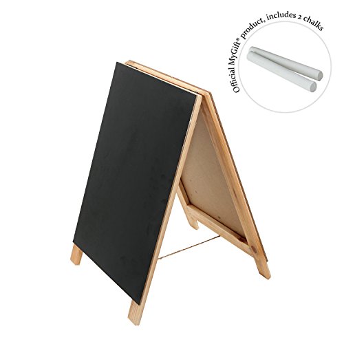 Display menus, announce sales, weddings, or other occasions with this stylish and functional tabletop A-frame chalkboard. Enjoy the freedom to design your own logo, menu, or schedule on either side of this freestanding and fully erasable A-frame chalkboard. Get ahead of the crowd and invite people into your event with this excellent piece of advertising signage.**Official MyGift® product.**