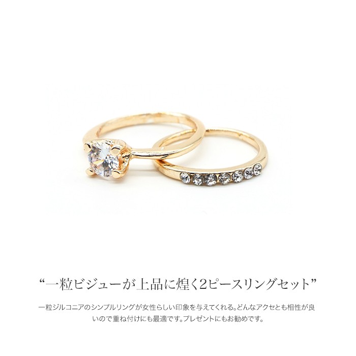 一粒ビジューが上品に煌く『2ピースリングセット』