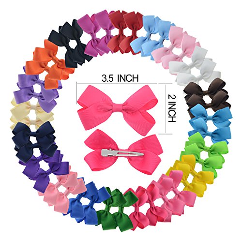 40pcs Toddler Girls Ribbon Bows for Hair (3 Inch and Giftbox Pack) LCLHB