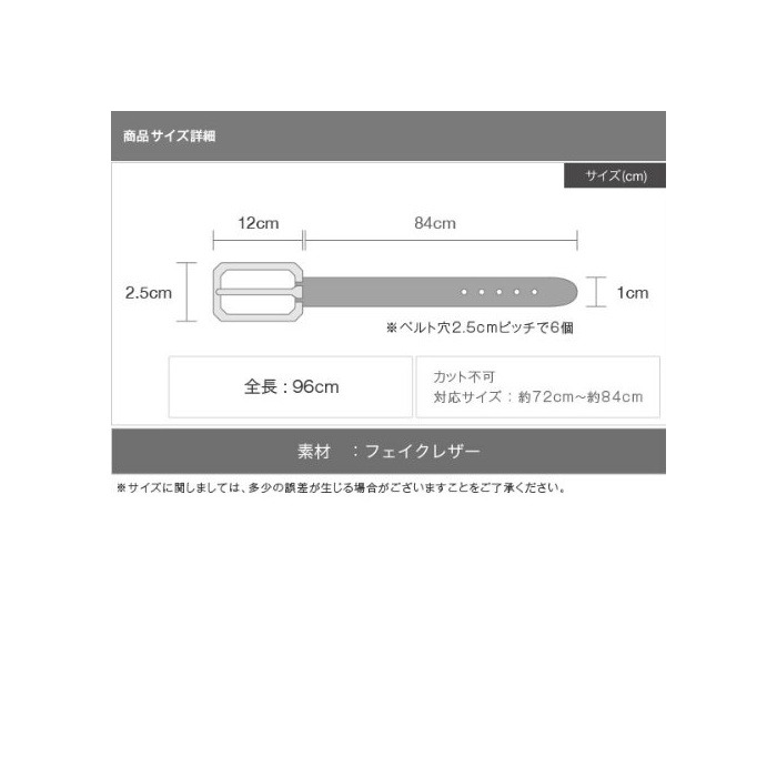 ■사이즈:전장:약96cm 버클 부분 세로 약2.5cm 폭약12.0cm 벨트폭:약1.0cm 대응 사이즈:약72cm~84cm 컷 불가