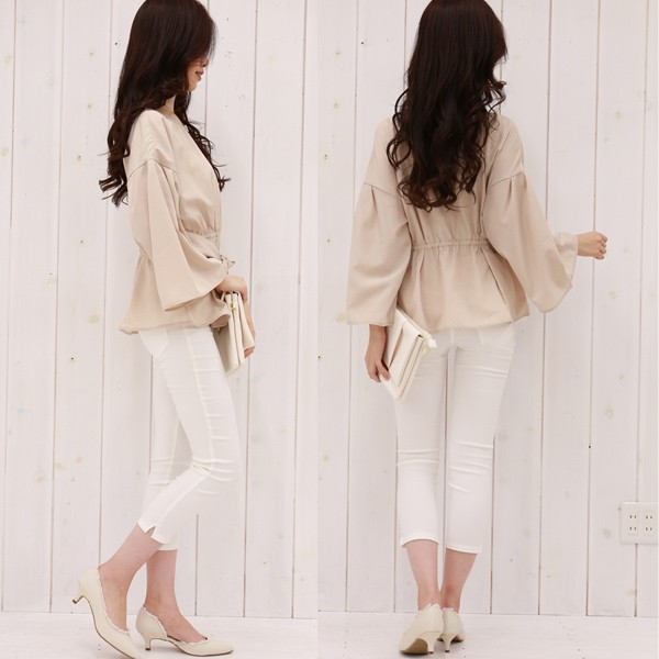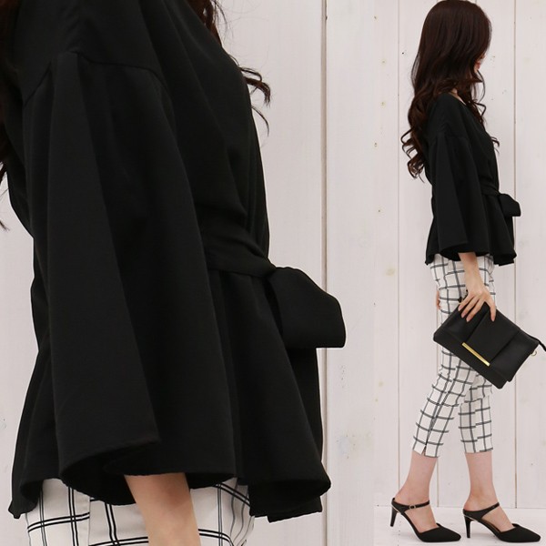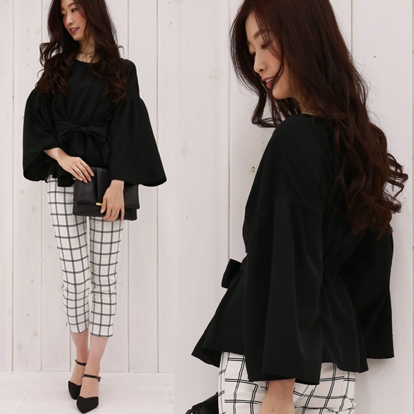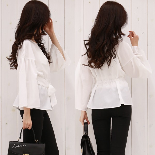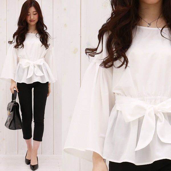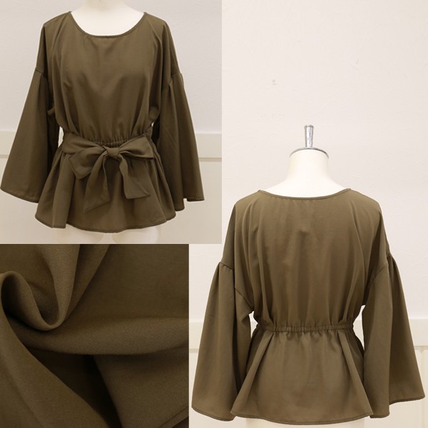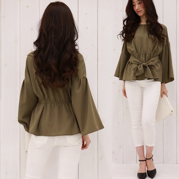 女性の魅力を引き立てるふんわりシルエット ウエストリボンぺプラムブラウス