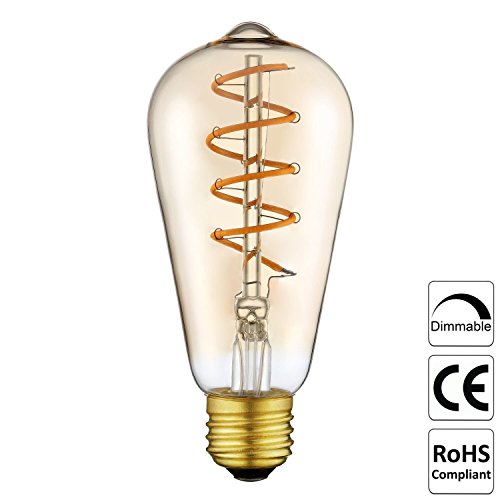 Vintage LED Edison Bulbs with Flexible Filament Bulb 4 Watts E26 Base Warm White 2200K Dimmable - Retro LED Light Bulbs for Pendants and Antique Light Fixtures -Amber (ST64-1 / 1 Pack)