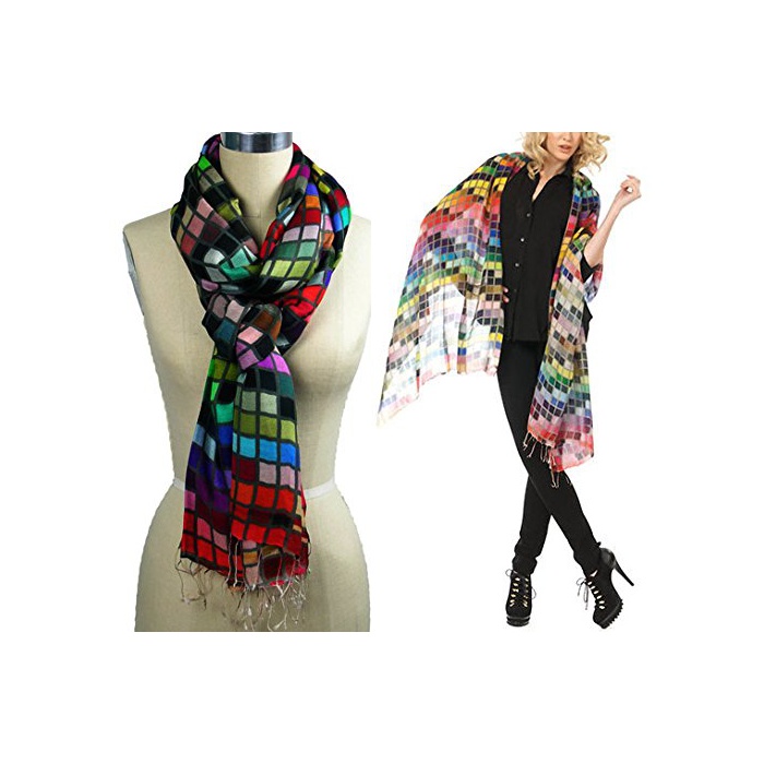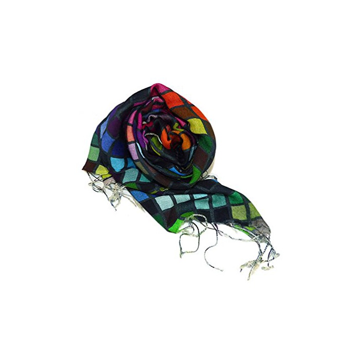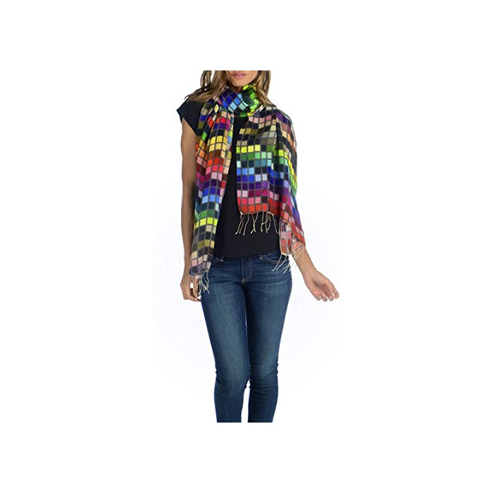 (토라《니》) TOLANI 모자이크 타일무늬 실크 스톨/스카프 멀티 컬러×charcoal [병행수입품]