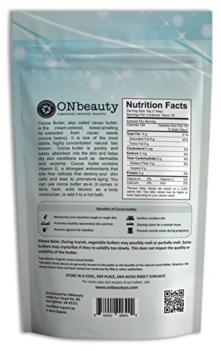 USDA Certified Organic Cocoa Butter by ONbeauty - 8 Oz, FOOD GRADE - Raw, Unrefined
