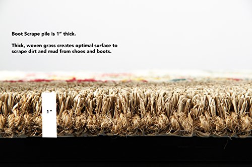 DURABLE 100% NATURAL COIR CONSTRUCTION: Coir is a natural, renewable material extracted from coconuts that is extremely durable and easy to maintain. The 100% natural Coir material serves as a boot scrape and effectively captures moisture, dirt, and other particles.