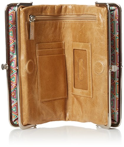 - Feature : The double frame interiors are fully lined in fabric with Hobo's signature credit card wall, bill pocket and zip security pocket / A magnetic snap closure and two exterior frames that will secure all items inside the clutch / Center panel features an ID window, three credit card slots and a large zip pocket / Brushed nickel hardware compliments the style of this wallet / Interior lining may differ from the color shown in the photo
