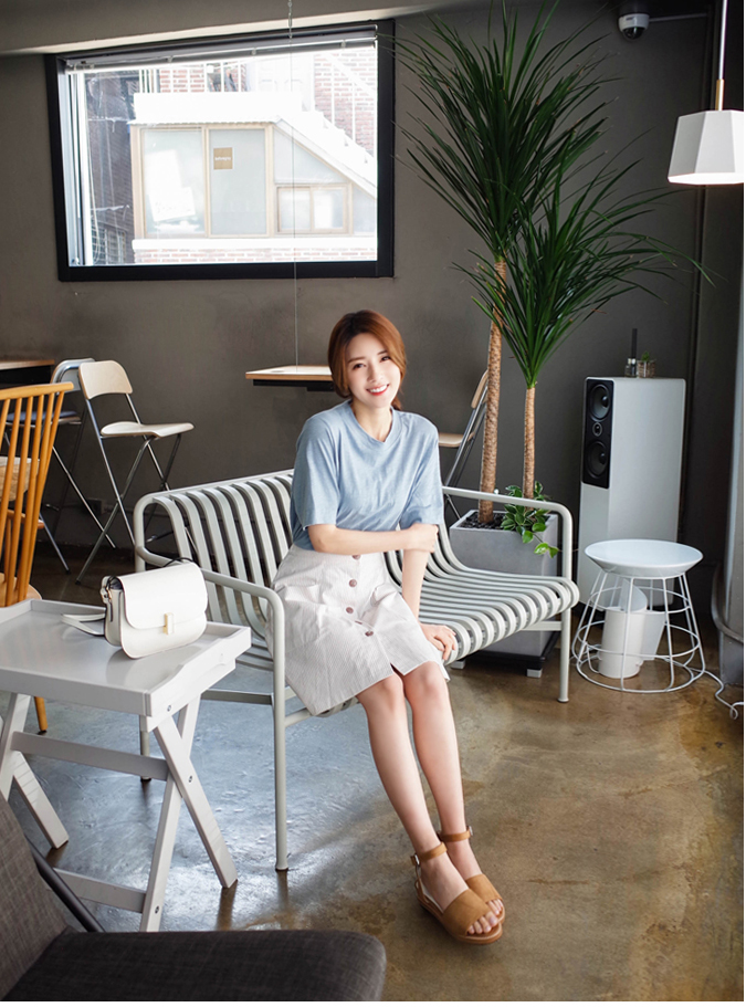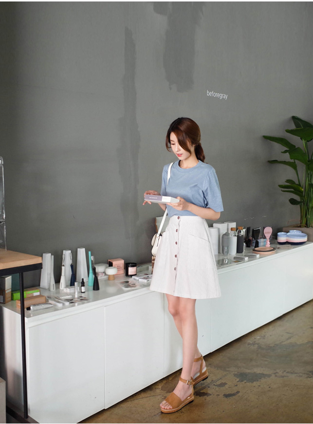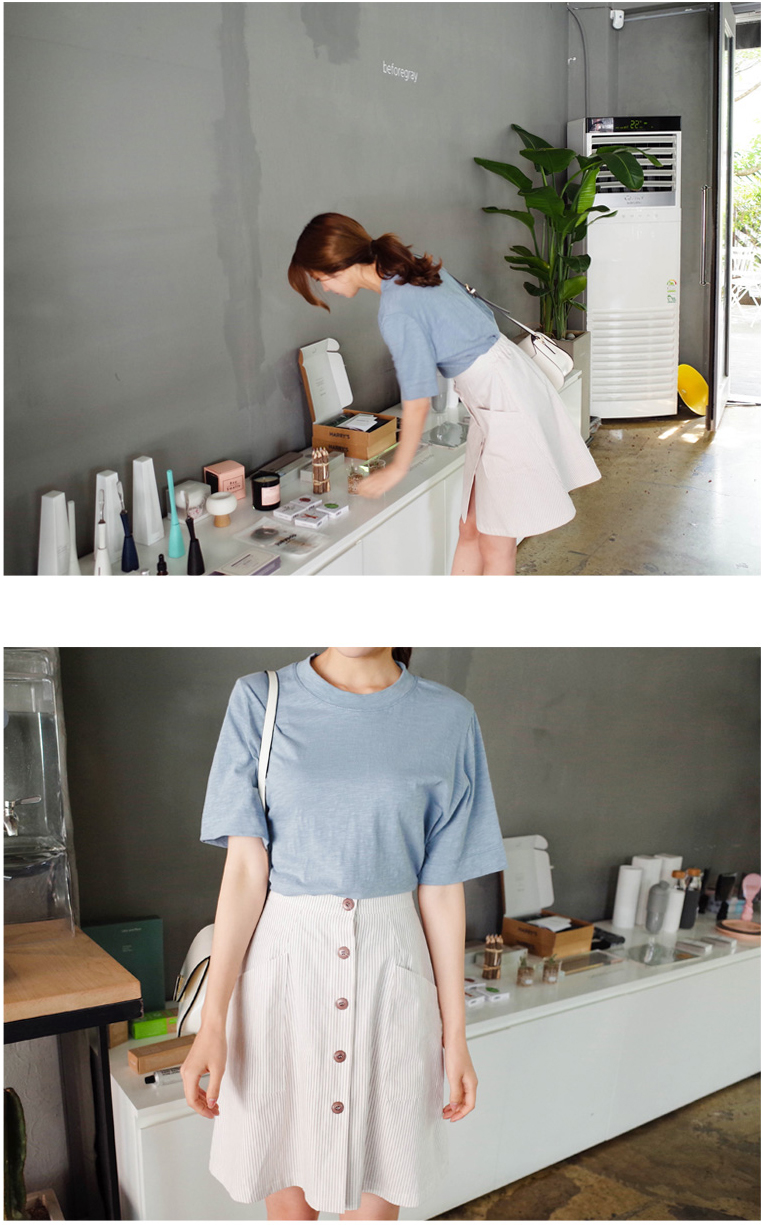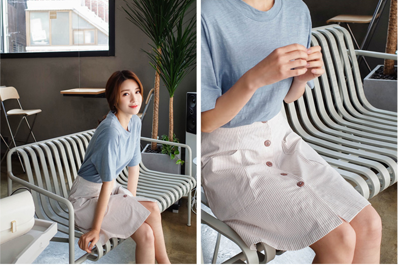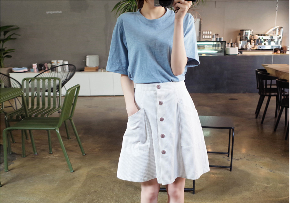 세로스트라이프 패턴의 A라인 스커트예요:)