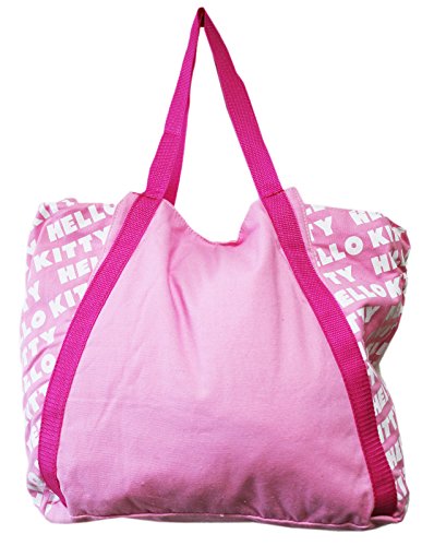 Shop until you drop! ; Hello Kitty tote bag; Made from canvas fabric; Single, large compartment with no additional pockets or sleeves; Magnetic snap lock opening; Measures 12in (30.5cm) tall and 17in (43cm) wideFeature