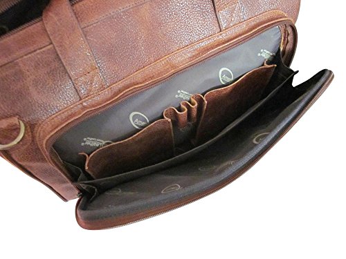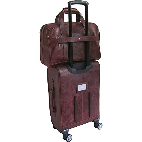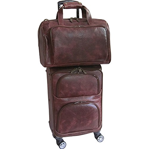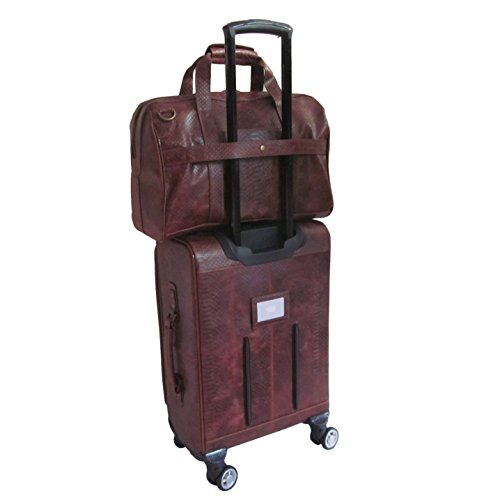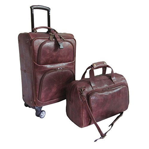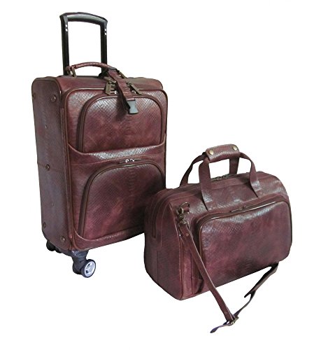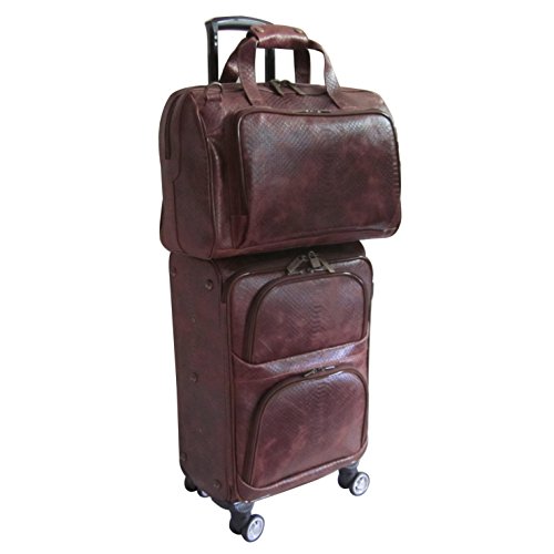 Studio : American Procurement Co., Inc. Publisher : American Procurement Co., Inc. Product Description Make a fashion statement when you travel with this durable, all matching leather two-piece luggage set. The set includes one vertical pullman on removable spinner wheels and one boarding tote bag. This brown pigskin leather suitcase set is sure to make a statement on your next vacation or business trip.2-piece luggage setIncludes upright suitcase and toteMade of genuine pigskin leatherBrown colorBrass tone hardwareFully lined interiors24-inch Upright Suitcase Includes:FAA approved carry-on luggageRemovable spinner wheelsTwo (2) front zippered pouch pocketsTop and side carry handlesLocking pull-out push-bottom handleSecurity lock with spare keyDetachable and adjustable snap-on 'attach-a-bag' strapBusiness card slot with transparent coverTwo (2) interior parallel strapsInterior zippered document pocketInterior large zippered mesh side panelProtective cloth coverSpare spinner wheel includedProduct weighs 10.6 poundsInterior compartment measures 18.5 inches high x 13 inches long x 7.25 inches wideDimensions: 24 inches high x 15 inches long x 10 inches wideNote: Measurements include handles and wheels.16.5-inch Boarding Tote Includes:Top zip openingTwo (2) interior side open pocketsSingle interior zip pocketFront zip-around pocket compartment with a center dividerCell phone pockets and 2 pen loopsExterior rear velcro pocketExterior snap-on strap conveniently slips over telescopic handle on wheeled luggageFive (5) bottom feetDual handles snap togetherDetachable, adjustable padded, non-slip cross shoulder strapProduct weighs 4.0 poundsDimensions: 16.5 inches long x 11.75 inches high x 7.75 inches wide 0
