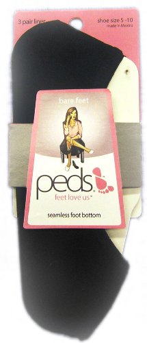 Peds Nylon Mid Cut, Black, 3 Pr.