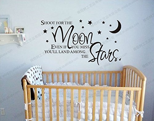Shoot For The Moon Stars Wall Decals Vinyl Wall Decal Baby Nursery Wall Decor, 20.5"W x 35.4"H, Black