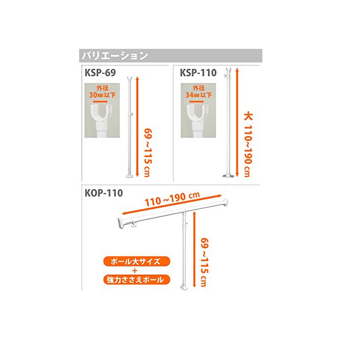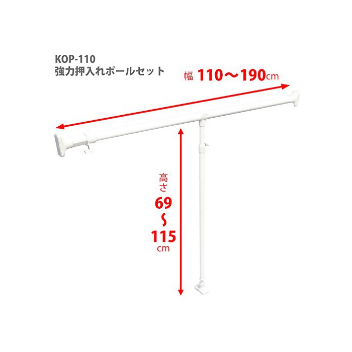 헤이안신 동공업 붙박이장(오시이레;반침)용 강력 지주봉 화이트 설치 치수69~115cm 외지름30mm이하 대응 KSP-69