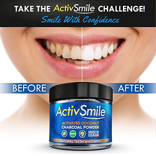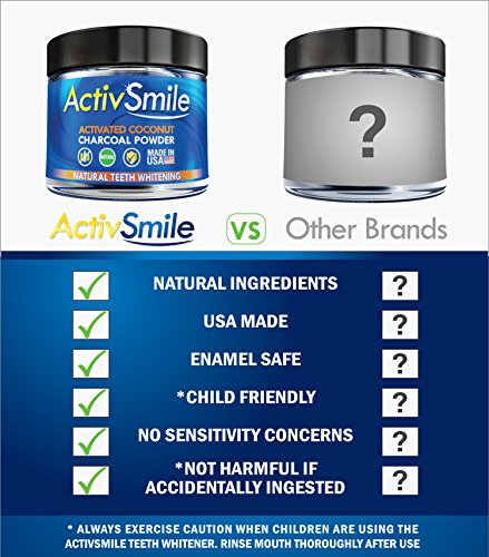 Studio : Sensible Needs Publisher : Sensible Needs Binding : Misc. Product Description FINALLY! A CHEMICAL-FREE ALTERNATIVE TO PEROXIDE, BLEACH WHITENING STRIPS, GELS LIGHTS! ActivSmile Activated Coconut Charcoal Powder is a chemical free alternative to your everyday teeth whitening needs, even for the most sensitive teeth! Tired of those stubborn stains from coffee, tea or food? Add ActivSmile to your teeth brushing routine and you will never have to worry again! Our ingredients are natural, non-toxic, chemical-free, sustainable and entirely "green".