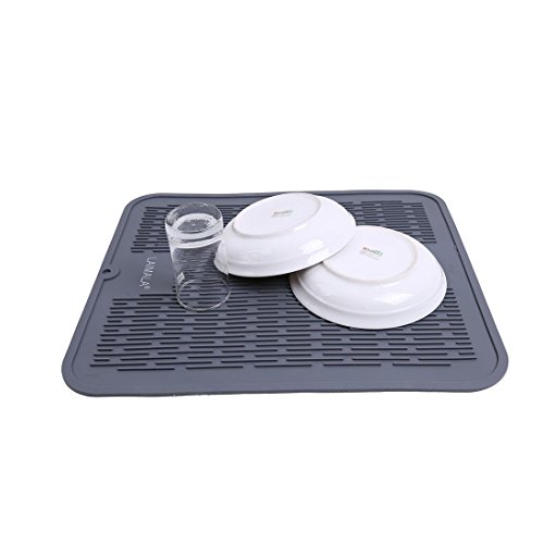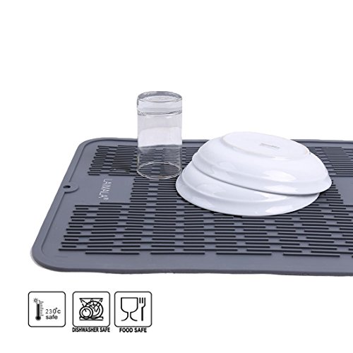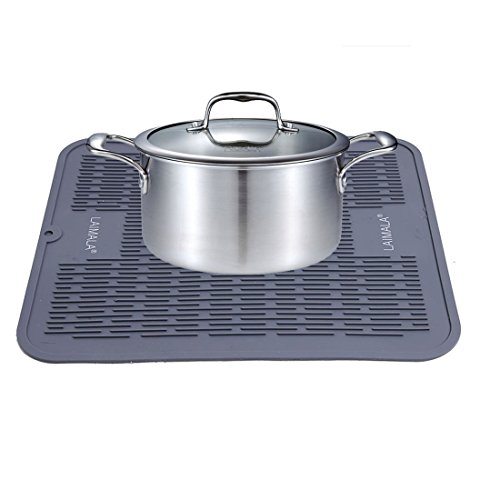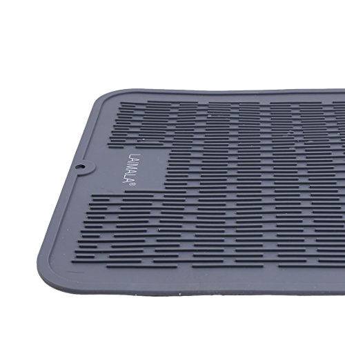 - Made of hygienic antimicrobial & antibacterial FDA food-grade silicone, this LAIMALA drying mat are a slightly lighter color of gray but, other than that, they really are comparable and both brands do the job of catching drips, providing a soft surface for crystal glasses, etc. as well as acting as a trivet for hot dishes.