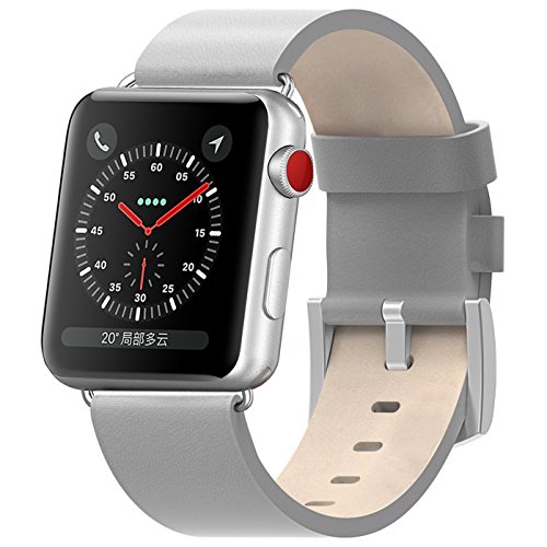-. Title : Apple Watch Band,42mm iWatch Genuine Leather iwatch Strap Replacement Band with Silver Stainless Metal Clasp for Apple Watch Apple Watch Series 1&2&3 Sport Sport and Edition (Gray)