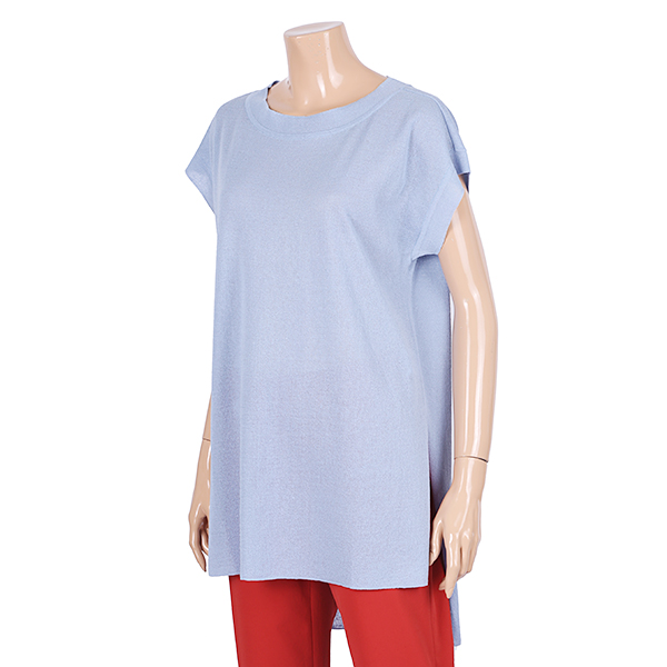 이 제품은 라운드목선의 심플함과 어깨를 충분히 덮는 캡소매로 한여름에도 편안하게 입을 수 있는 제품으로