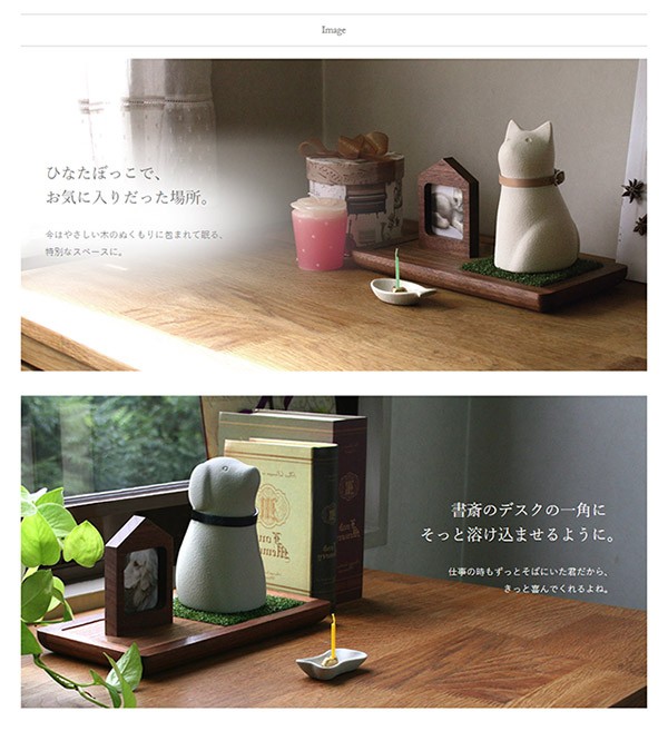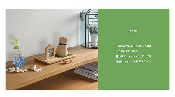 ペットの面影を感じられる骨つぼモニュメントと、リビングに溶けこむ可愛いステージは、つい話しかけたくなるような、優しい気持ちで向き合えます。