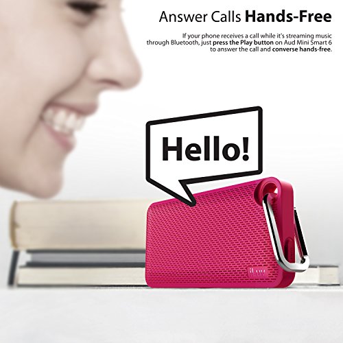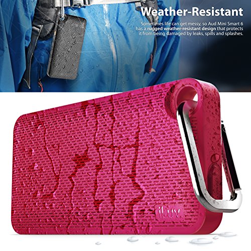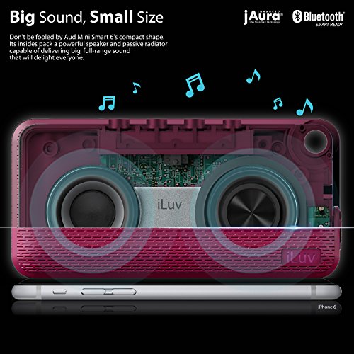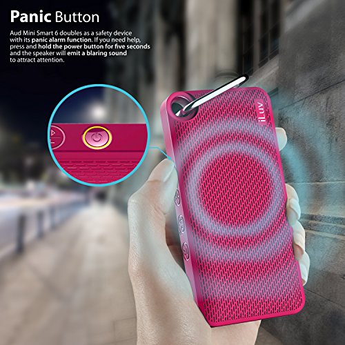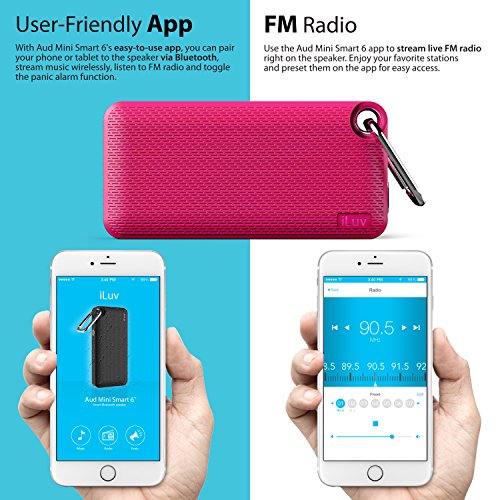 - Title : Aud Mini Smart 6 by iLuv - Slim Pocket-Sized Portable Weather Resistant Bluetooth Speaker with App-Enable FM Radio for Hiking, Camping, Traveling & All Other Outdoor Activities. Compatible with Apple iPhone 6, iPhone 6 Plus, iPhone 5S, iPhone 5C, iPhone 5, iPhone 4S, iPad Air, iPad mini, Samsung GALAXY S6, Samsung GALAXY S5, Samsung GALAXY S4, Samsung GALAXY S3, Samsung Note 4, Samsung Note 3, Samsung Tablet, LG Smart Device, HTC Smart Device and other Bluetooth-compatible Smartphones and Tablets (Pink Carabineer)
