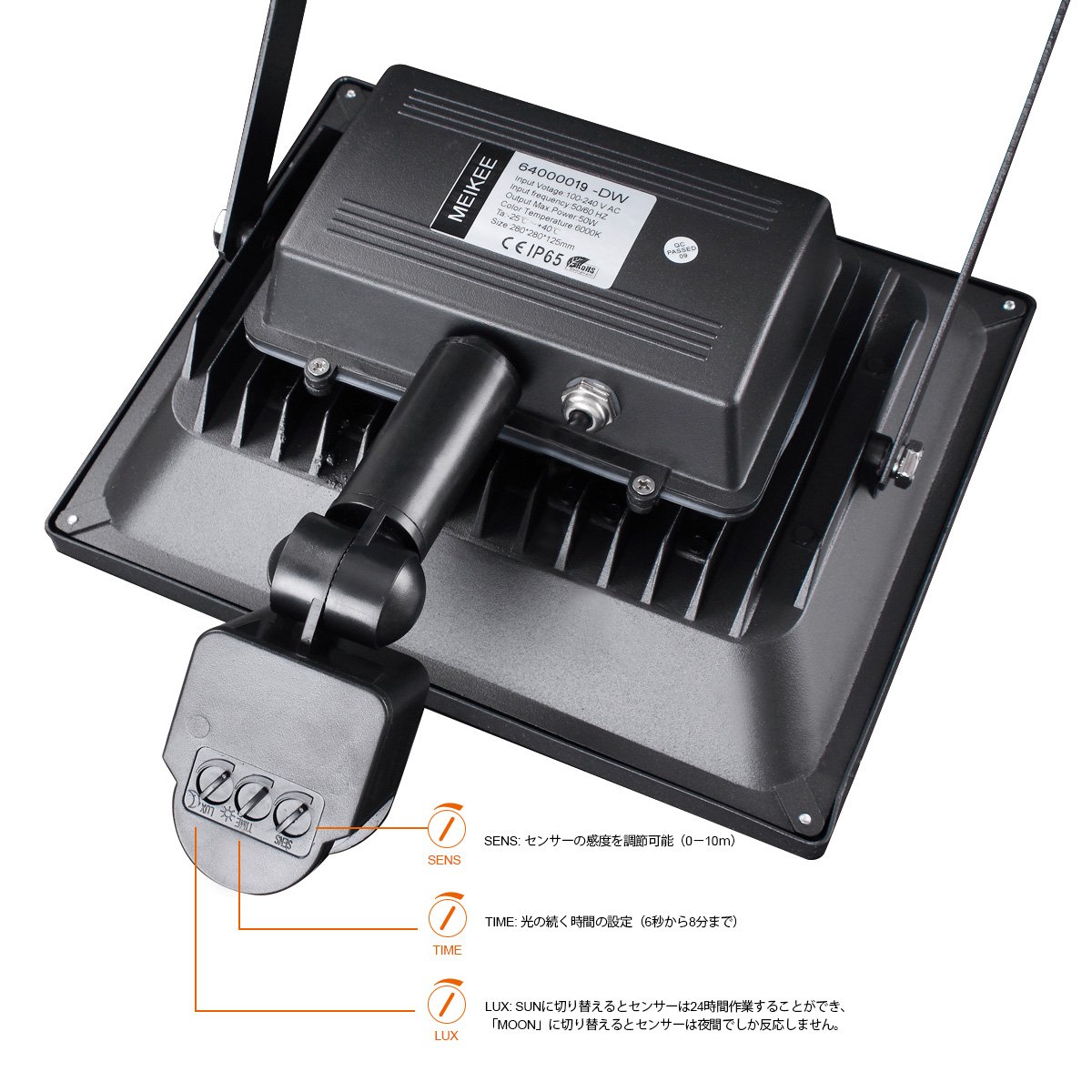 ● You can freely adjust the lighting time, the sensing light amount, and the sensing distance: