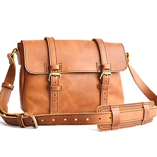 -. Feature : Handmade 100% Full-Grain Leather Satchel. Made from the highest-quality hand-picked USA leather, superior solid brass hardware, and thick, industrial strength, marine-grade thread. / Crafted to be extremely durable. Our bags don't contain cheap, breakable parts or big gaudy logos...they're just designed and built to be loyal companions on all of the adventures that life brings your way. / Aesthetically pleasing, attractive design to be worn as a shoulder/crossbody messenger or satchel bag. / Dimensions: Outside: 13.4" x 9.8" x 3.75" and weighs 3.3 lbs Inside: 13" x 9.25" x 3.15" / We make leather products with the finest leather at the highest standard. Our collection represents many months of research and product testing. We are confident that our products will last several decades or even your whole life.
