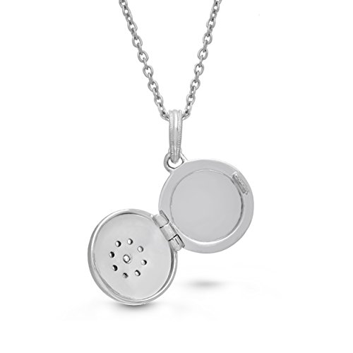 The perfect compliment to the little black dress (or t-shirt), this versatile piece keeps those you love close to your heart. Luminous white topaz and oxidized sterling silver come together to give the illusion of black diamonds in this beautifully crafted round locket necklace. The Roxette is the smaller version of the Roxy locket necklace. The Roxette evokes the image of theater footlights with a circle of topaz in the center of the pendant. This keepsake locket reminds us of a grand age of Hollywood. The sterling silver locket suggests Busby Berkeley movie images creating complex but beautiful patterns by glamorous women. The grand movie palaces of the 1920's and 30's were perfected by man who went by name Roxy. He eventually founded Radio City Music Hall and the Rockettes, who were originally called the Roxyettes. When we designed this piece it was with Old Hollywood charm in mind. Images of Ginger Rogers, Dorothy Lamour and Rita Hayworth came to our minds as well as some of the women we know that still represent that type of old school glamour today. Includes oxidized sterling silver locket pendant with white topaz and sterling silver chain. Locket measures 15mm diameter. Available in chain lengths from 18" to 36". Our 18" through 34" necklace chains come standard with a 2" jump ring which may be used to shorten the chain by 2" and allows two length options.Feature