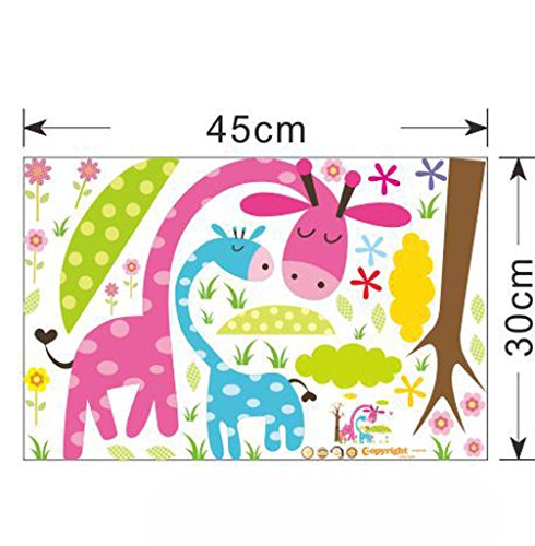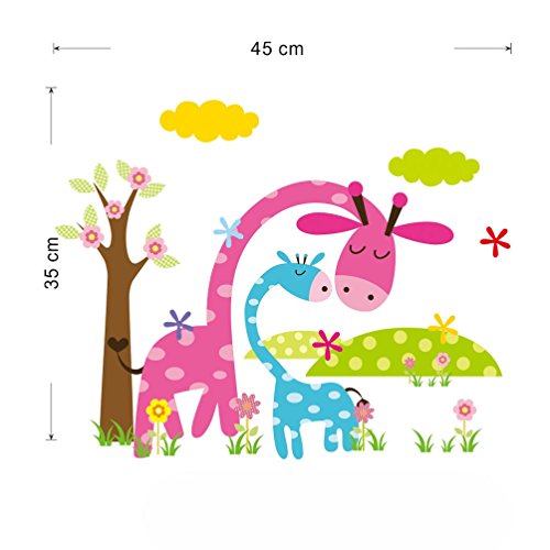 BIBITIME Jungle Animal Decal Pink Blue Giraffes Wall Sticker for Kids Room Decor Nursery Vinyl Forest Tree Flower Vinyl Art Mural,DIY 17.71" x 13.78"