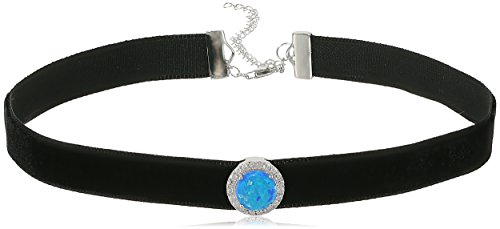 Sterling Silver CZ with Synthetic Opal Velvet Choker